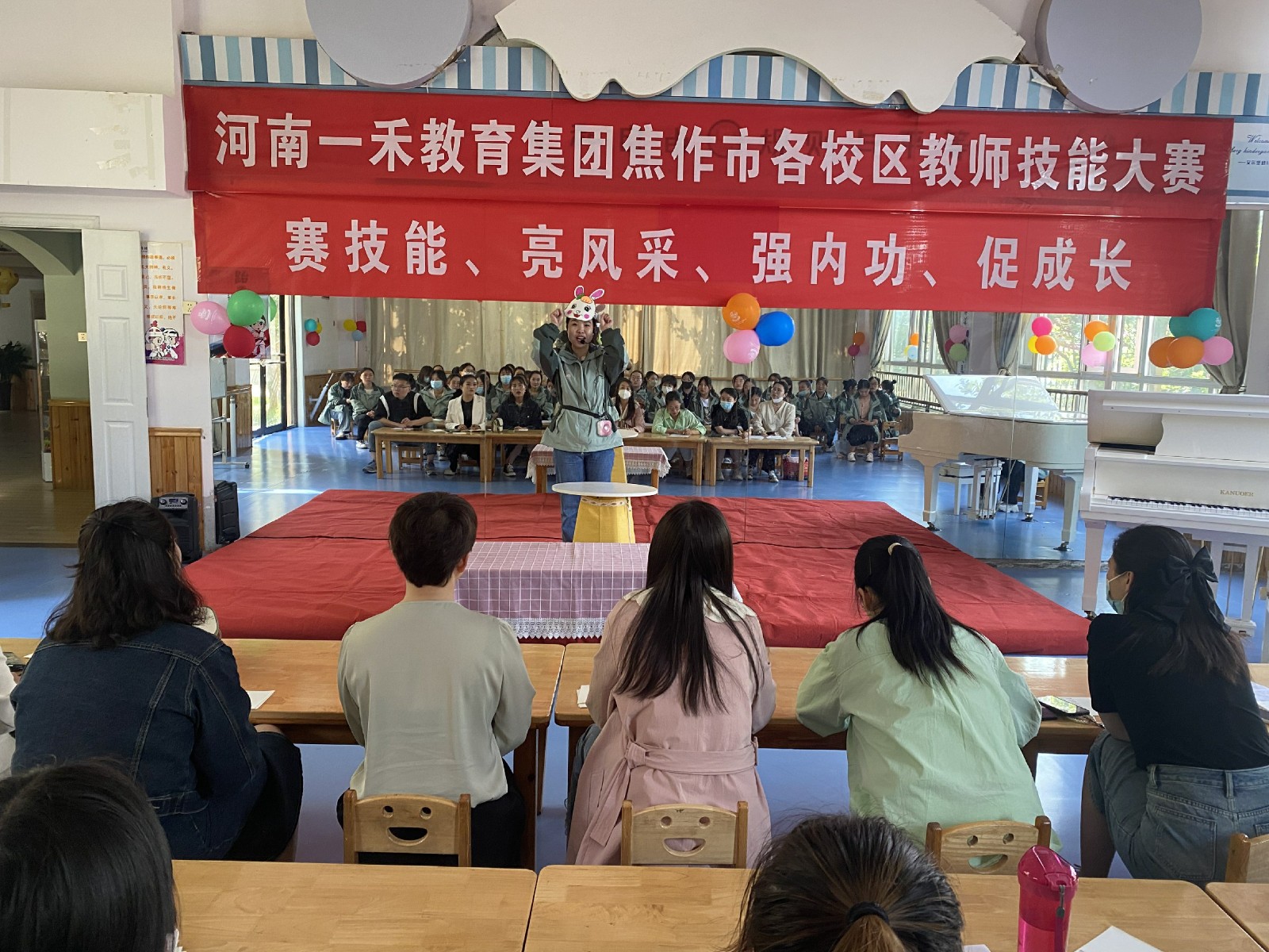 2023年5月13日,河南一禾教育集團(tuán)焦作市各校區(qū)教師匯聚在一禾艾爾堡校區(qū),舉辦了一場別開生面的教師技能大賽。 教師們用生動的演繹,專業(yè)的表現(xiàn)為大家?guī)砹艘粓鲆暵犑⒀纾〗處焸凖R聚一堂,互相交流學(xué)習(xí),在這難得的珍貴的體驗(yàn)中展示了屬于自己的風(fēng)采。