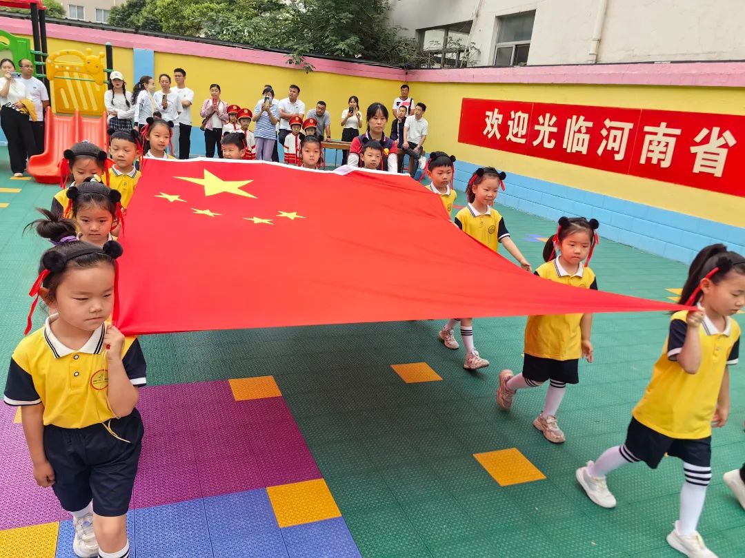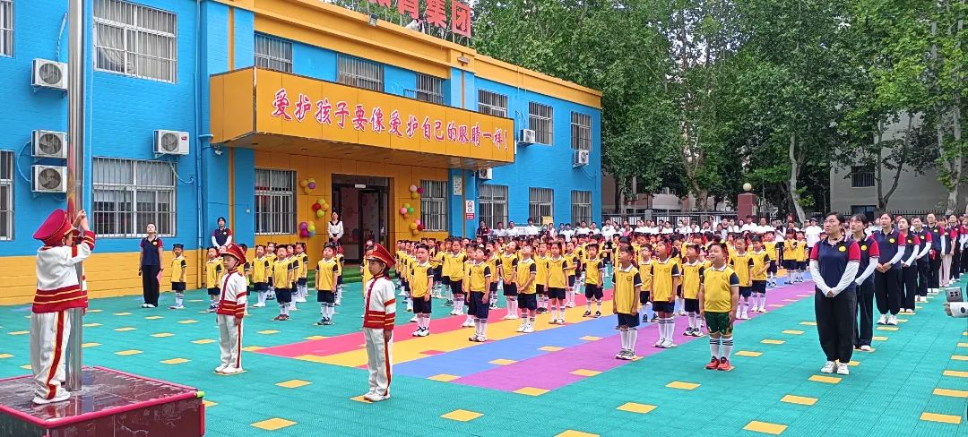 隨著《義勇軍進(jìn)行曲》的響起,鮮艷的五星紅旗冉冉升起,全體師幼面向國旗行注目禮,伴隨著激昂的旋律唱起了國歌,用心感受著國旗升起的莊嚴(yán)時刻。