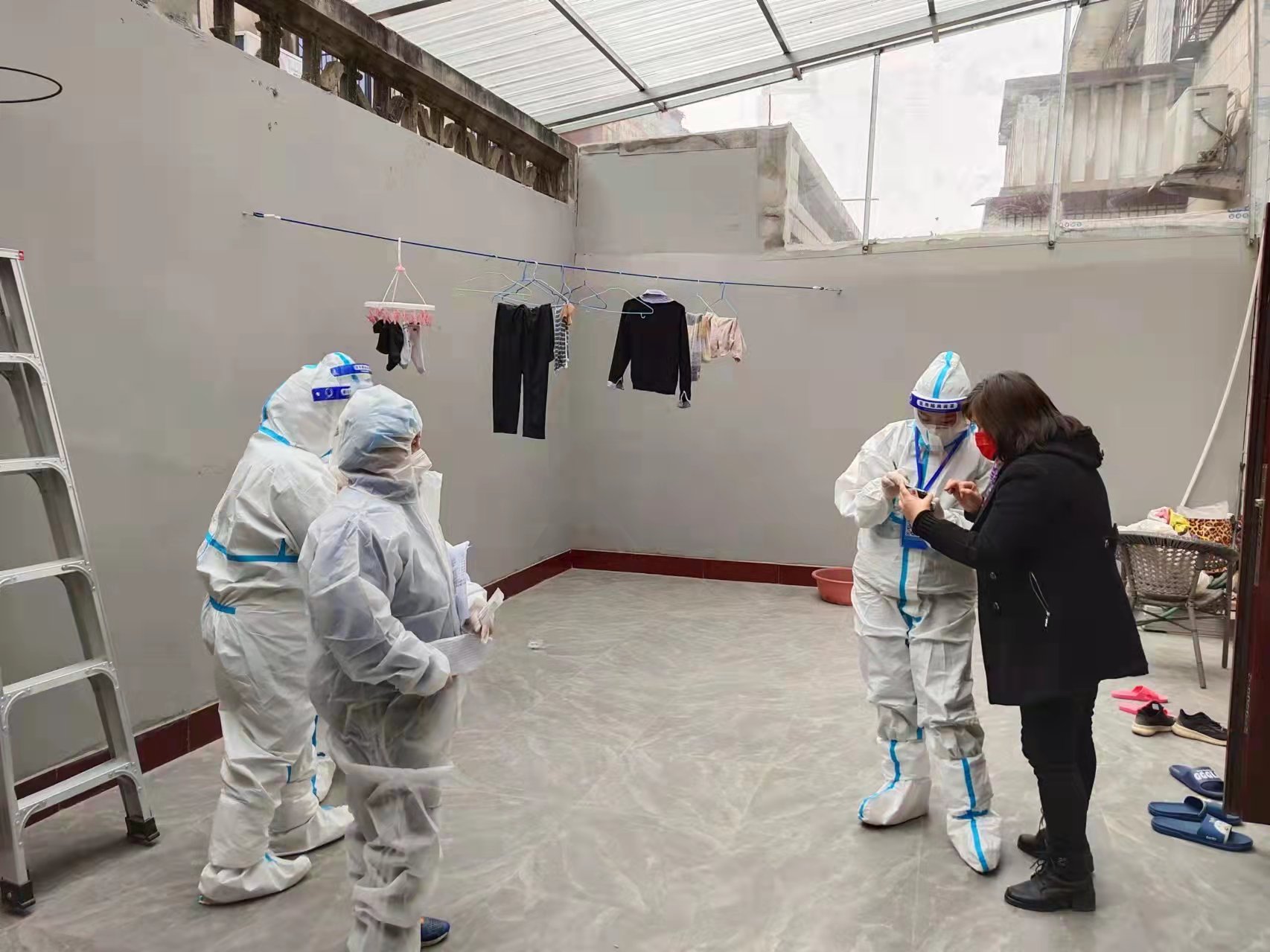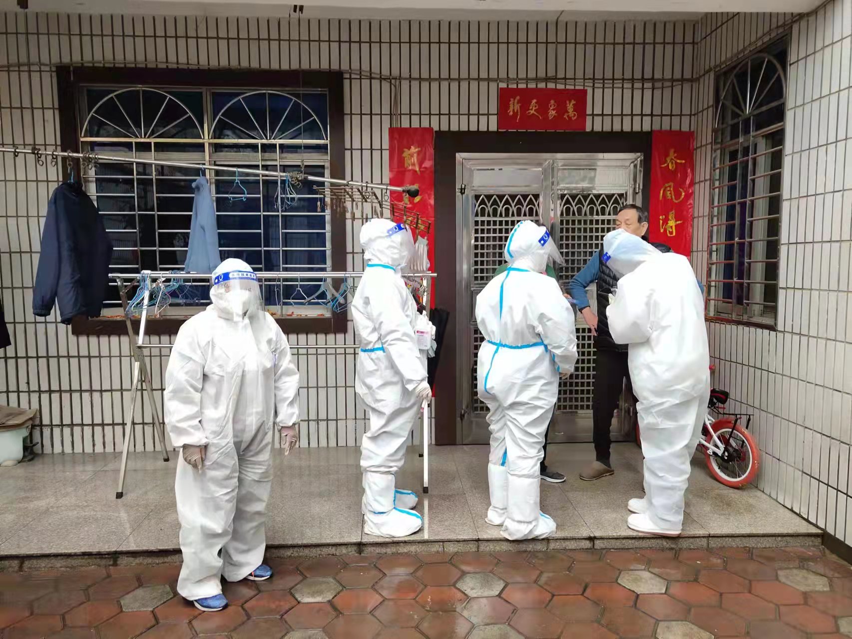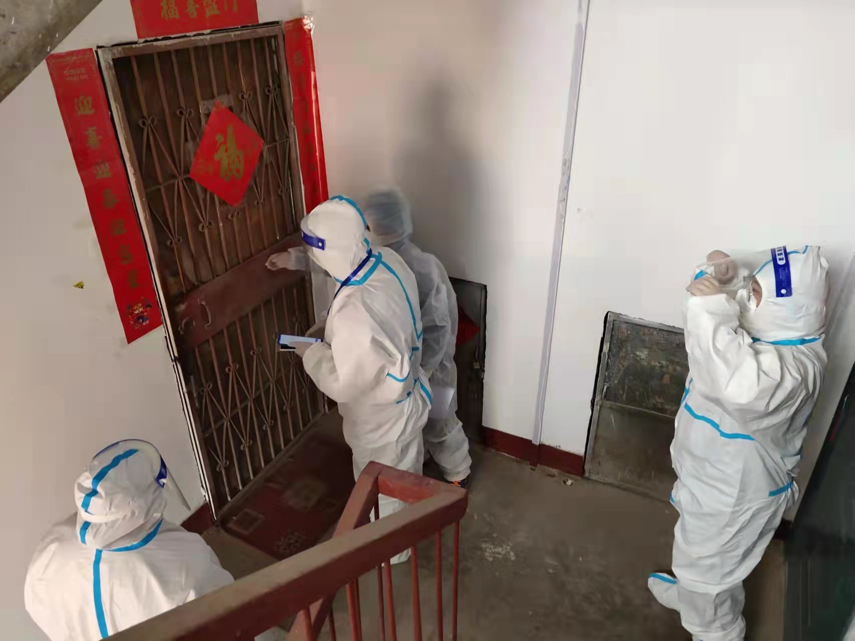 社區(qū)內有不少老年人不便下樓,姬園長和其他團隊成員就一起上門服務,為老年人以及身體不便的病人做核酸檢測。