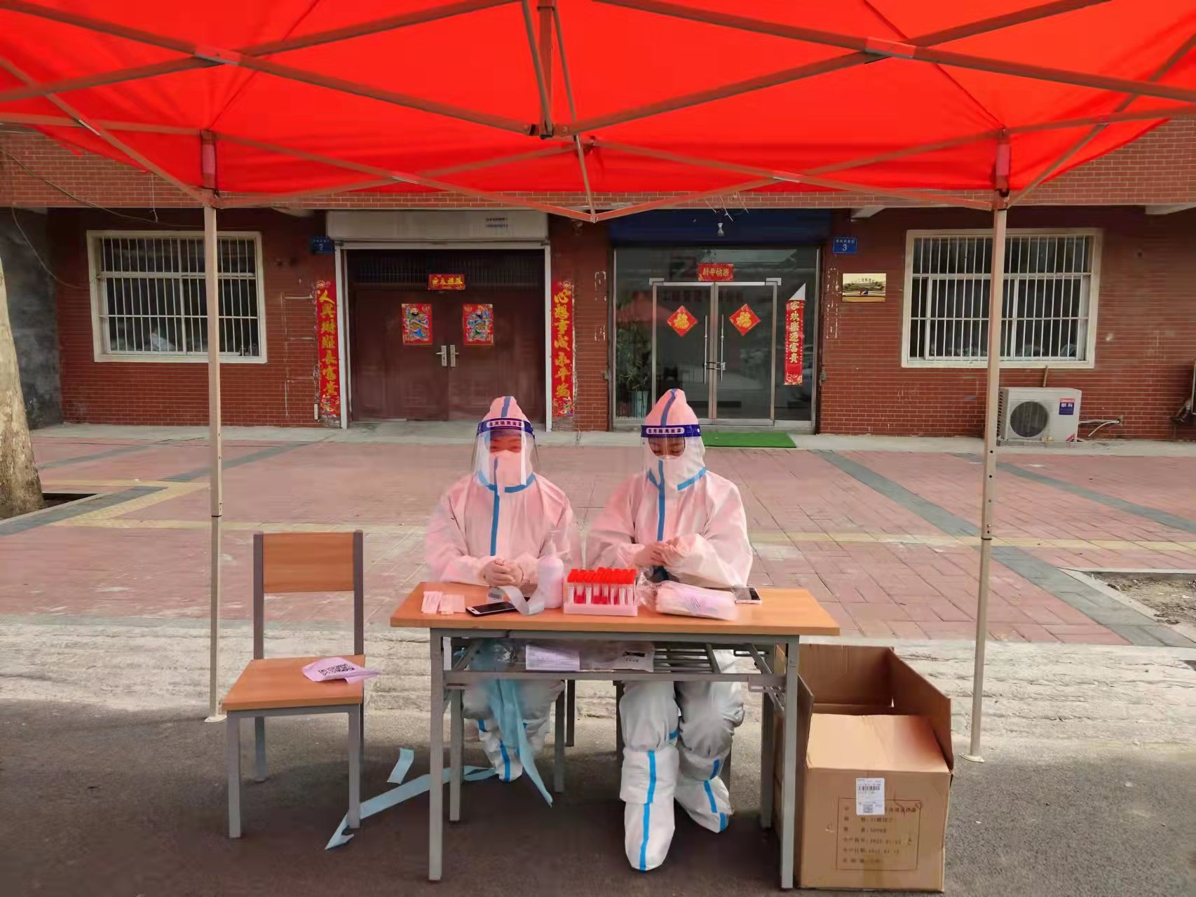 姬園長服務的是新城辦事處恩華社區(qū)。早上6點到點位,每天要做一千多人的核酸登記工作。一連數日,姬園長每天都要進行核酸檢測人員的掃碼登記、發(fā)放棉簽和管子、封管封箱、協(xié)助轉運樣本等工作;其中最忙的一天直到下午四點才結束,期間因為穿著隔離服,整個工作時間沒有喝水也沒有上廁所。