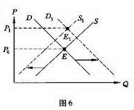 13.圖6中P為價格,Q為數量,S為供給曲線,D為需求由線,供求關系的變化會影響價格變化,下列說法與圖示一致的有