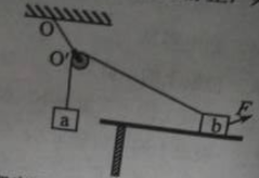 19.如圖,一光滑的輕滑輪用細繩OO'懸掛于O點;另一細繩跨過滑輪,其一端懸掛物塊a,另一端系一位于水平粗糙桌面上的物塊b。外力F向右上方拉b,整個系統處于靜止狀態。若F方向不變,大小在一定范圍內變化,物塊b仍始終保持靜止,則