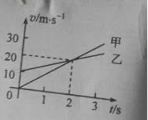 21.甲、乙兩車在平直公路上同向行駛,其v-t圖像如圖所示。已知兩車在t=3s時并排行駛,則