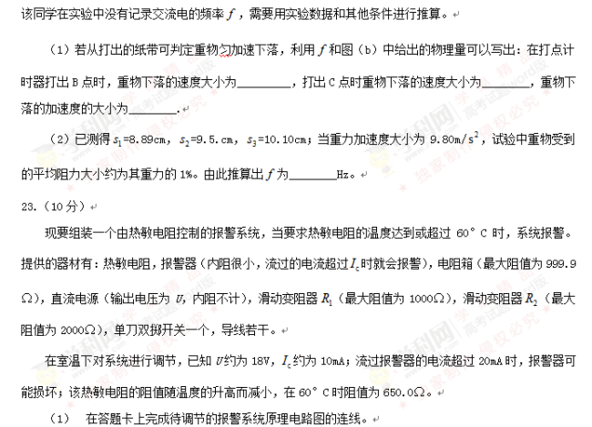 2016年河南高考理綜試題
