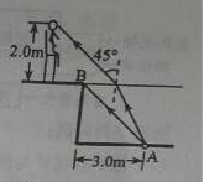 (ii)一救生員坐在離池邊不遠處的高凳上,他的眼睛到地面的高度為2.0 m。當他看到正前下方的點光源A時,他的眼睛所接受的光線與豎直方向的夾角恰好為45°。求救生員的眼睛到池邊的水平距離(結果保留1位有效數字)。